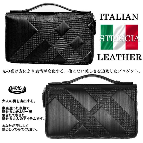 送料無料 まとめ10 オフ イタリア製 ストリシアレザー ダブルファスナーセカンドバッグ メンズ 本革 バック レザー 皮 牛革 牛皮 Bag ビジネス ケース 大きい財布 個性的 フォーマル 結婚式 セレモニーバッグ かばん カバン 鞄 プレゼント 魅せるバッグ インディ